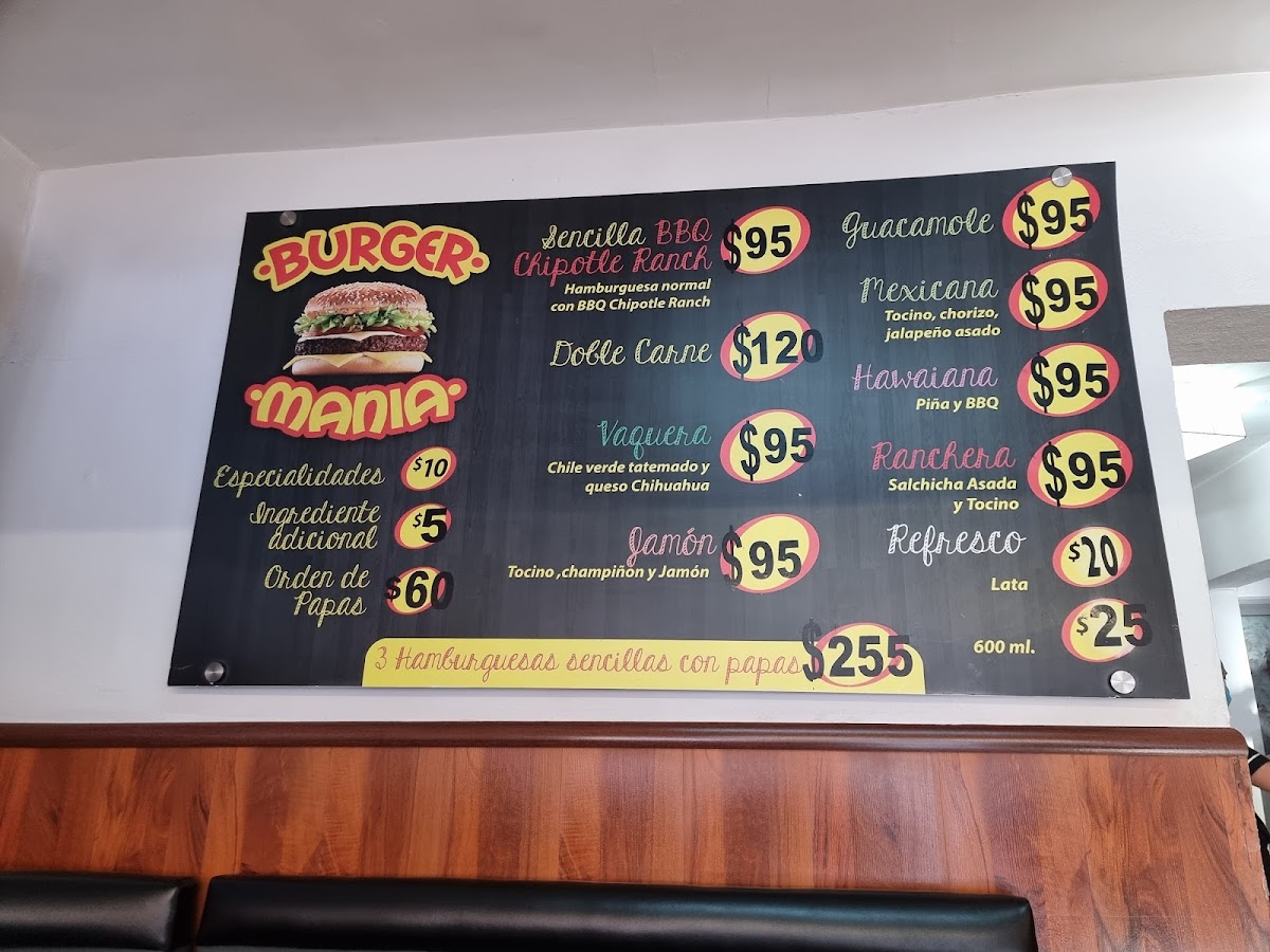 Hamburguesas al Carbon Burger Mania Menu (2025 Update)
